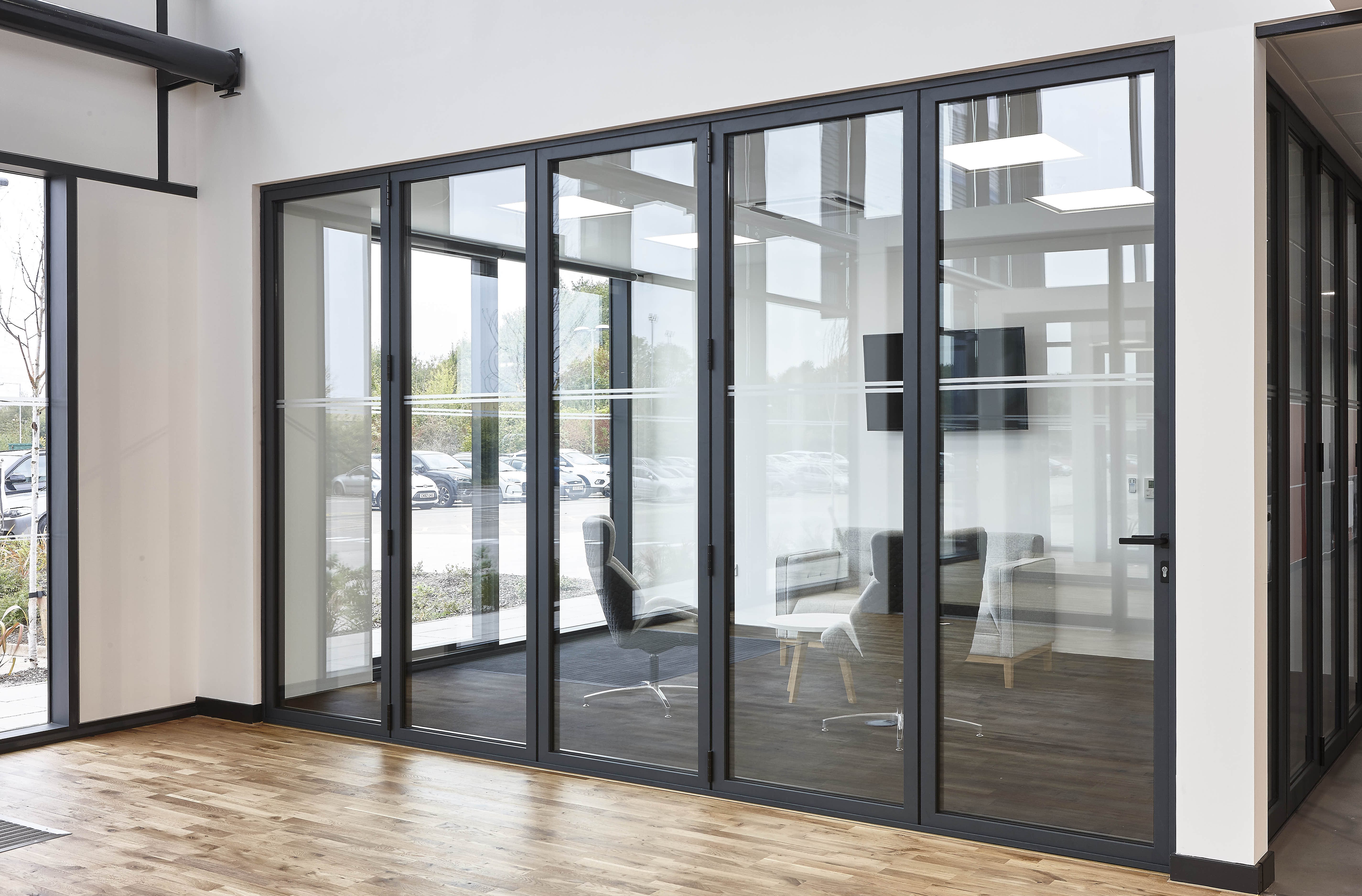 The contemporary look created by these uniform sightlines extends to the bespoke flush hardware designed and developed just for this door. This includes a new flush pop up T-handle, unique to AluK, which removes the need to add unsightly surface mounted door handles. There is also a flush handle for the traffic door, and specially designed, heavy duty rollers which deliver effortless operation. The F82 has achieved PAS24 accreditation at 2600mm wide, meaning that it can be installed in new build properties where Approved Document Q is required.